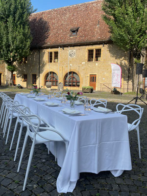 à notre invitation. Mais chacun a apprécié le cadre hors du commun offert par la cour du château et le magnifique buffet servi par l’équipe de la Taverne du Château. DJ ESILAB alias Blaise Roulet